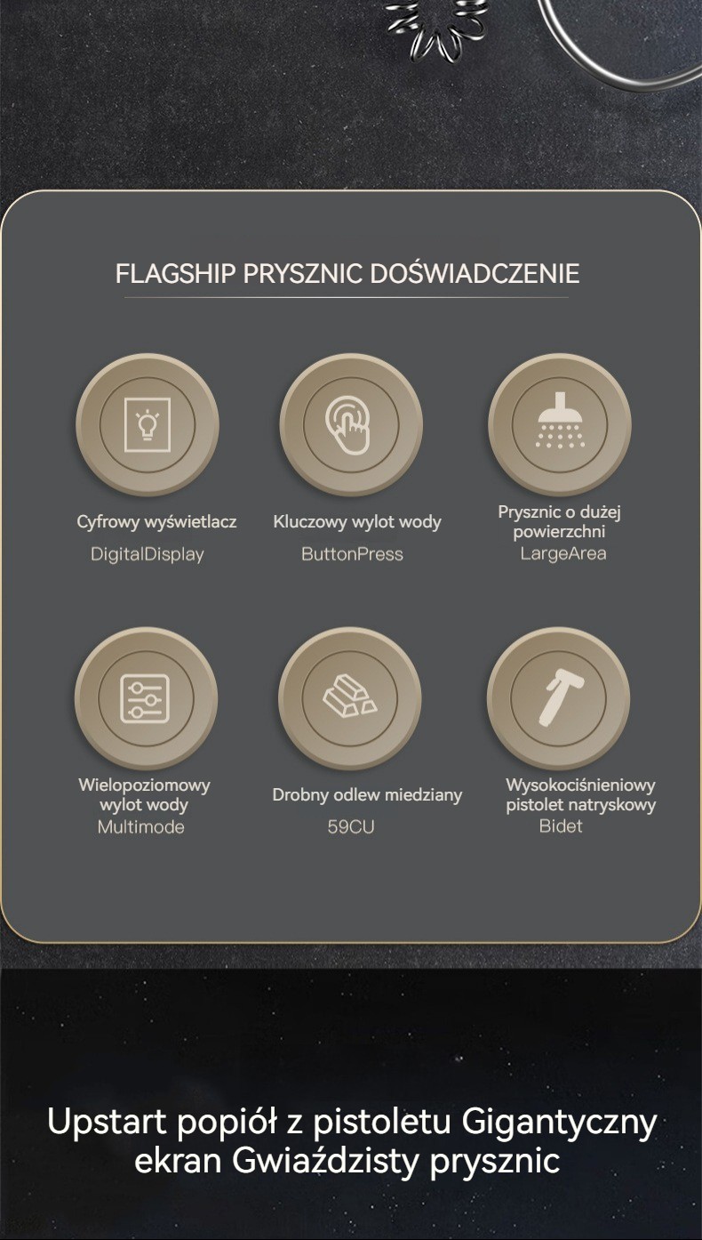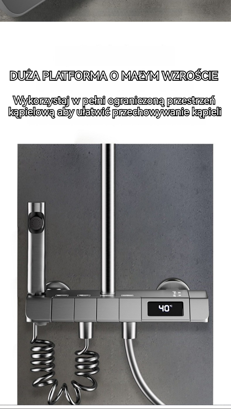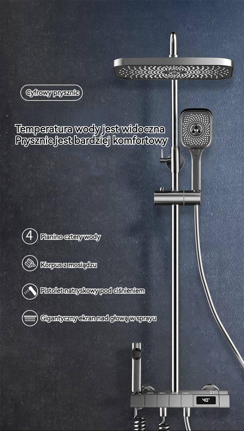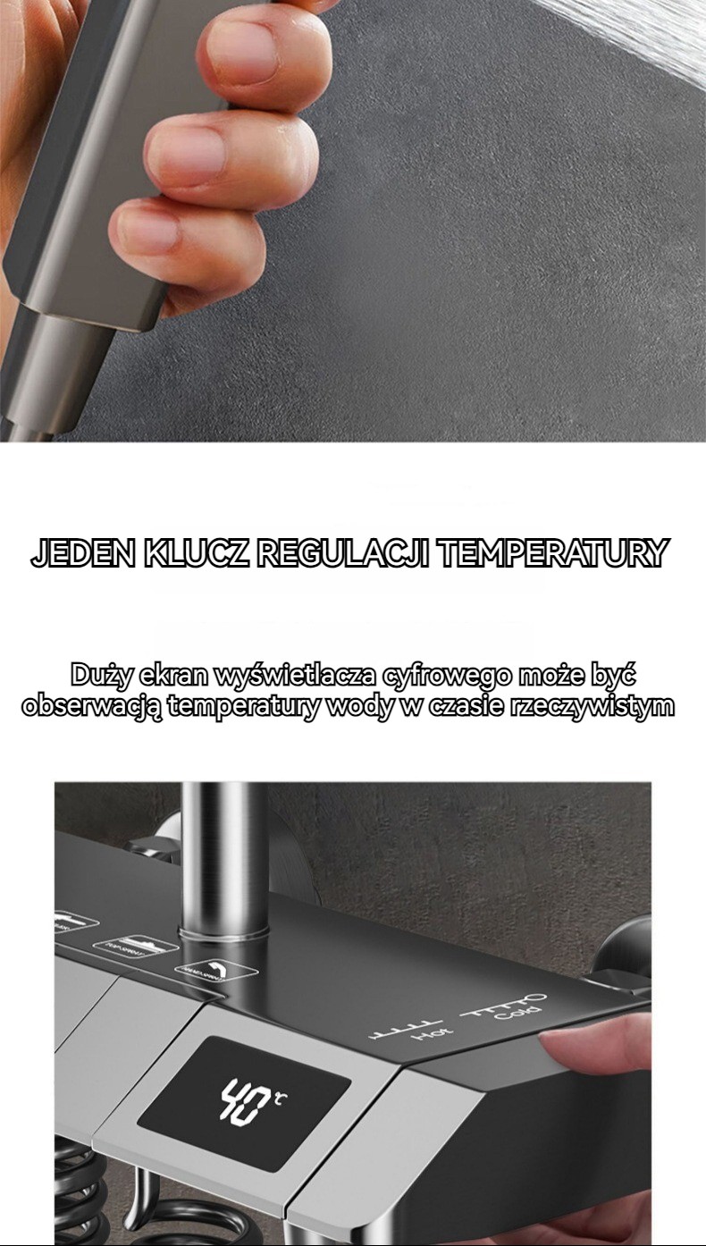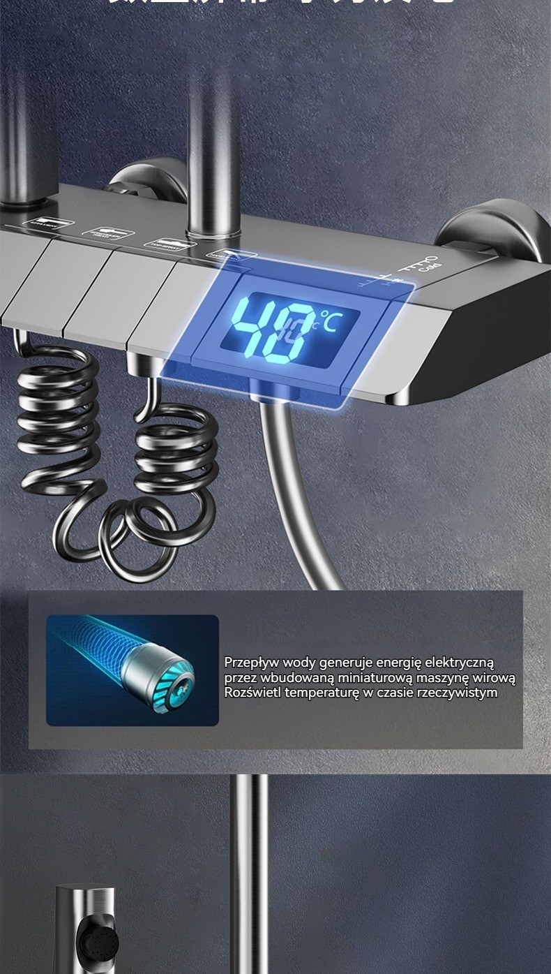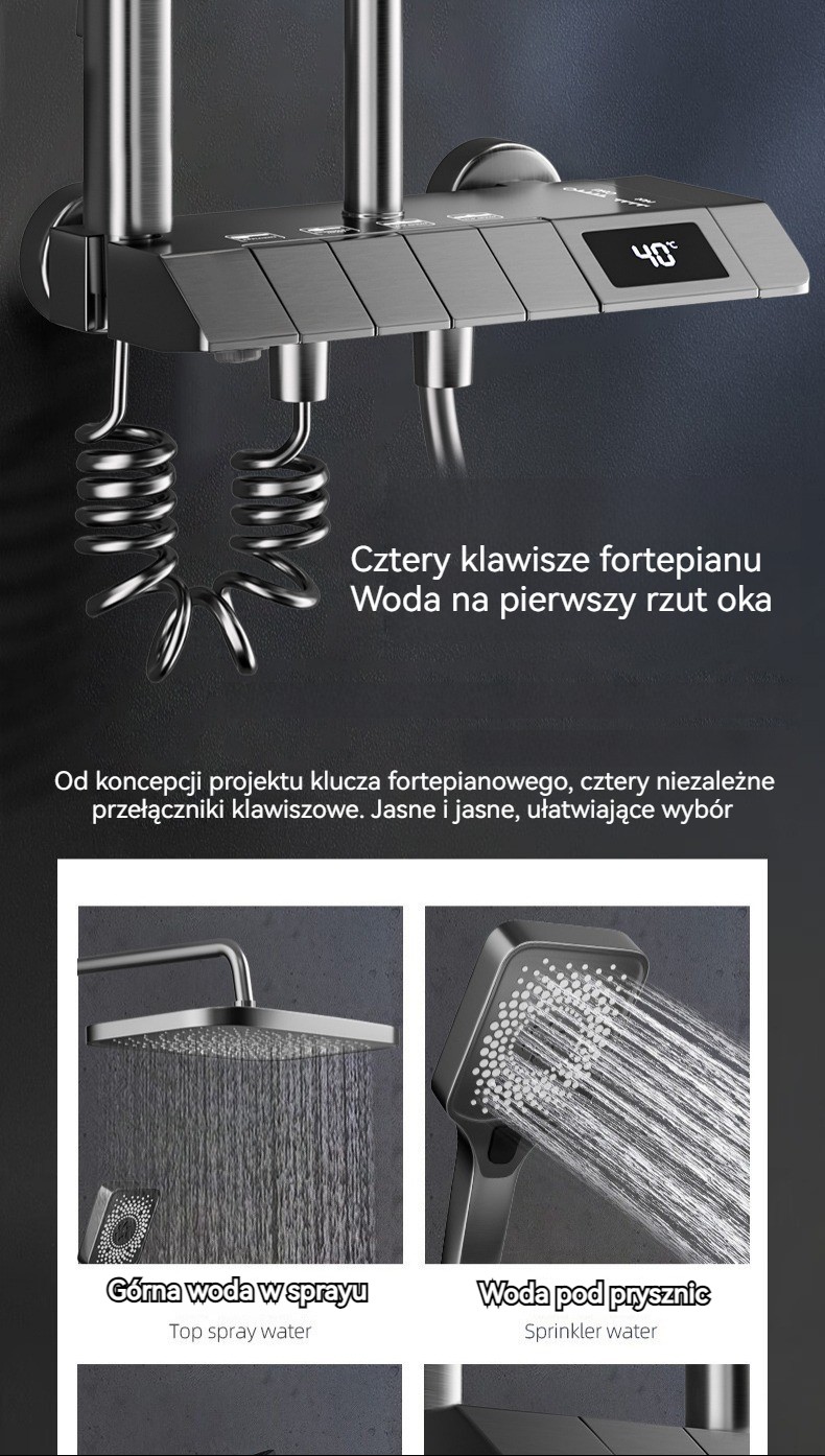 Zestaw prysznicowy, konstrukcja przycisku fortepianowego, ciesz się prysznicem spa, piękny i praktyczny, cyfrowy wyświetlacz temperatury hydroelektrycznej