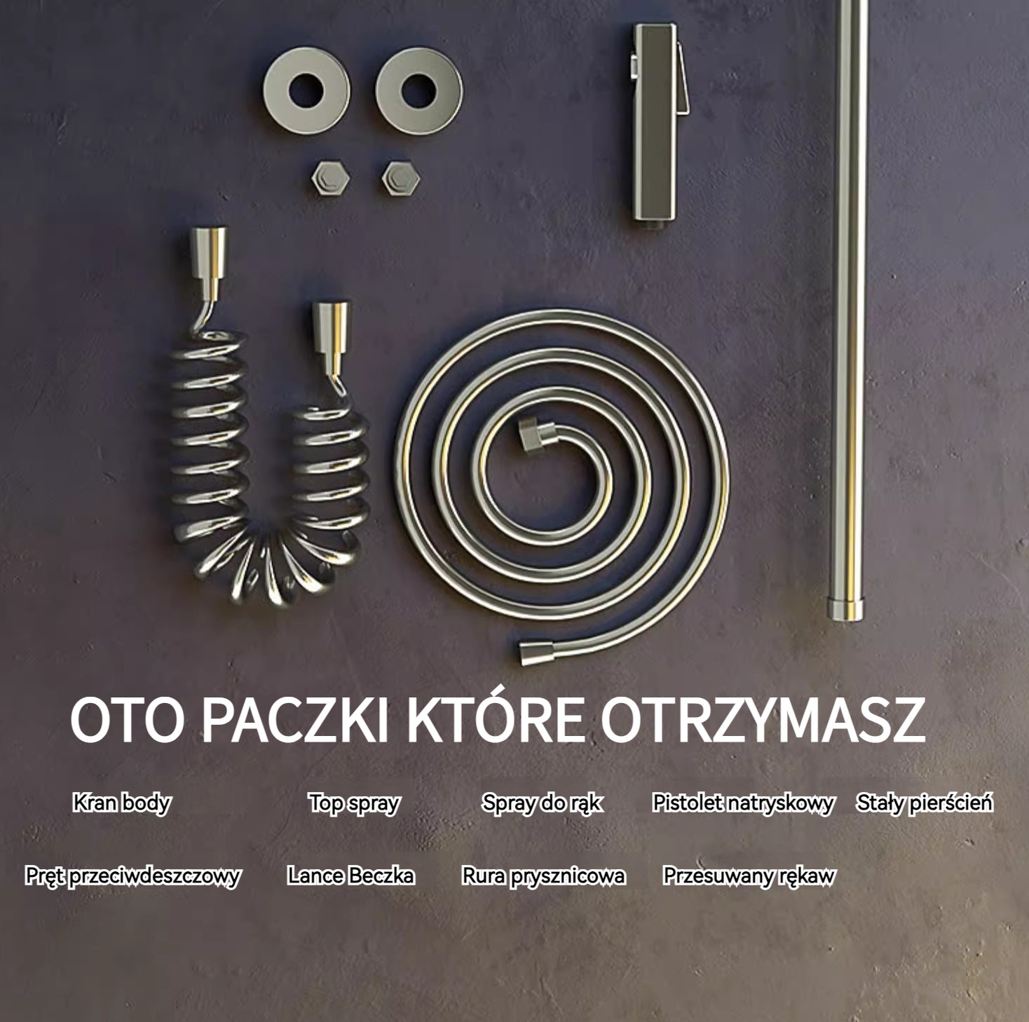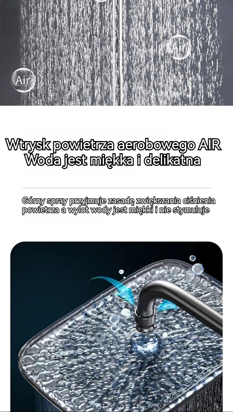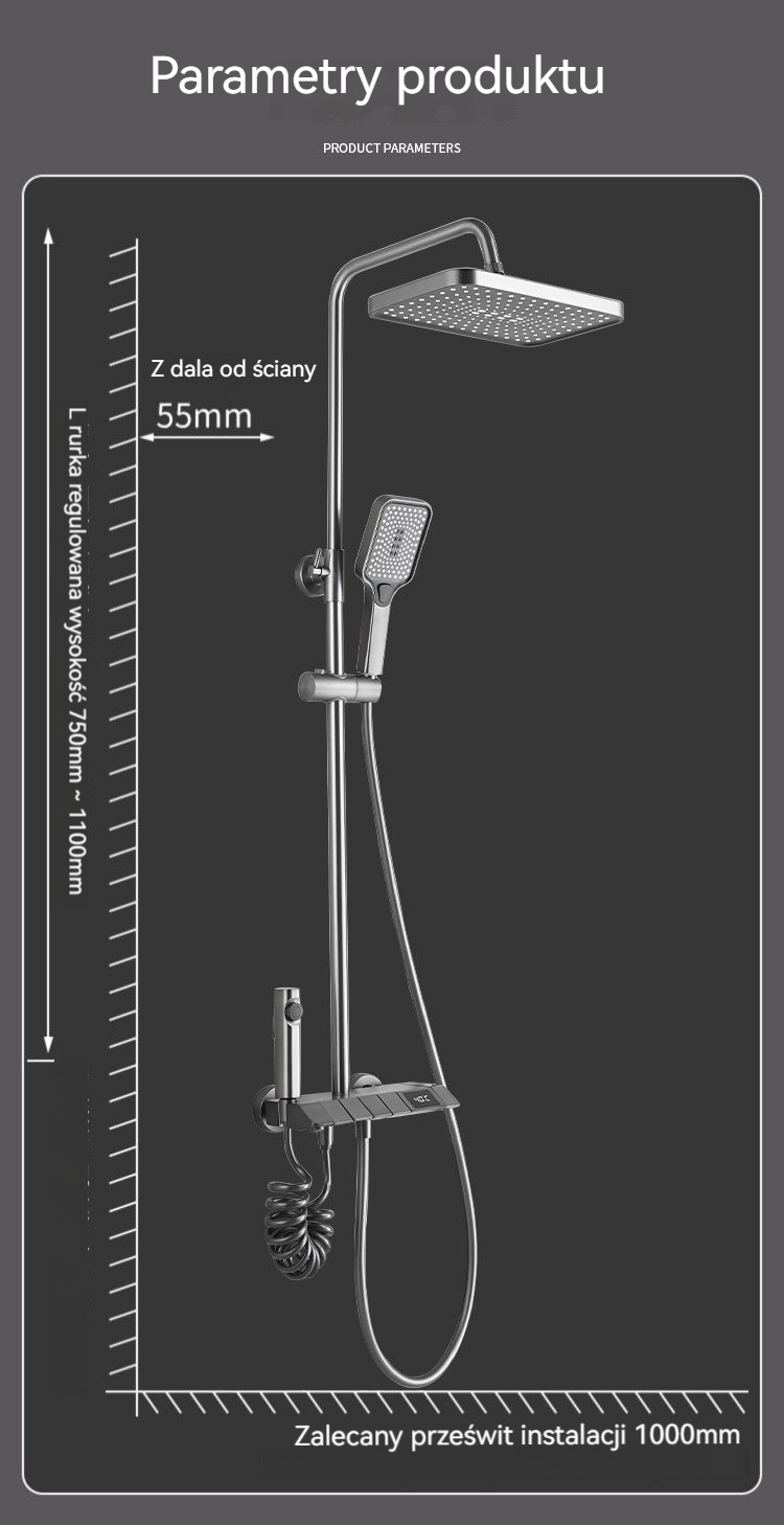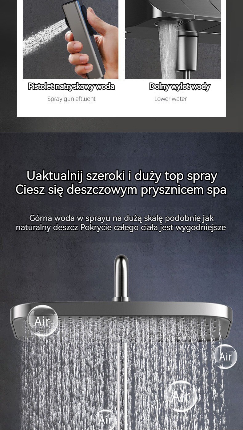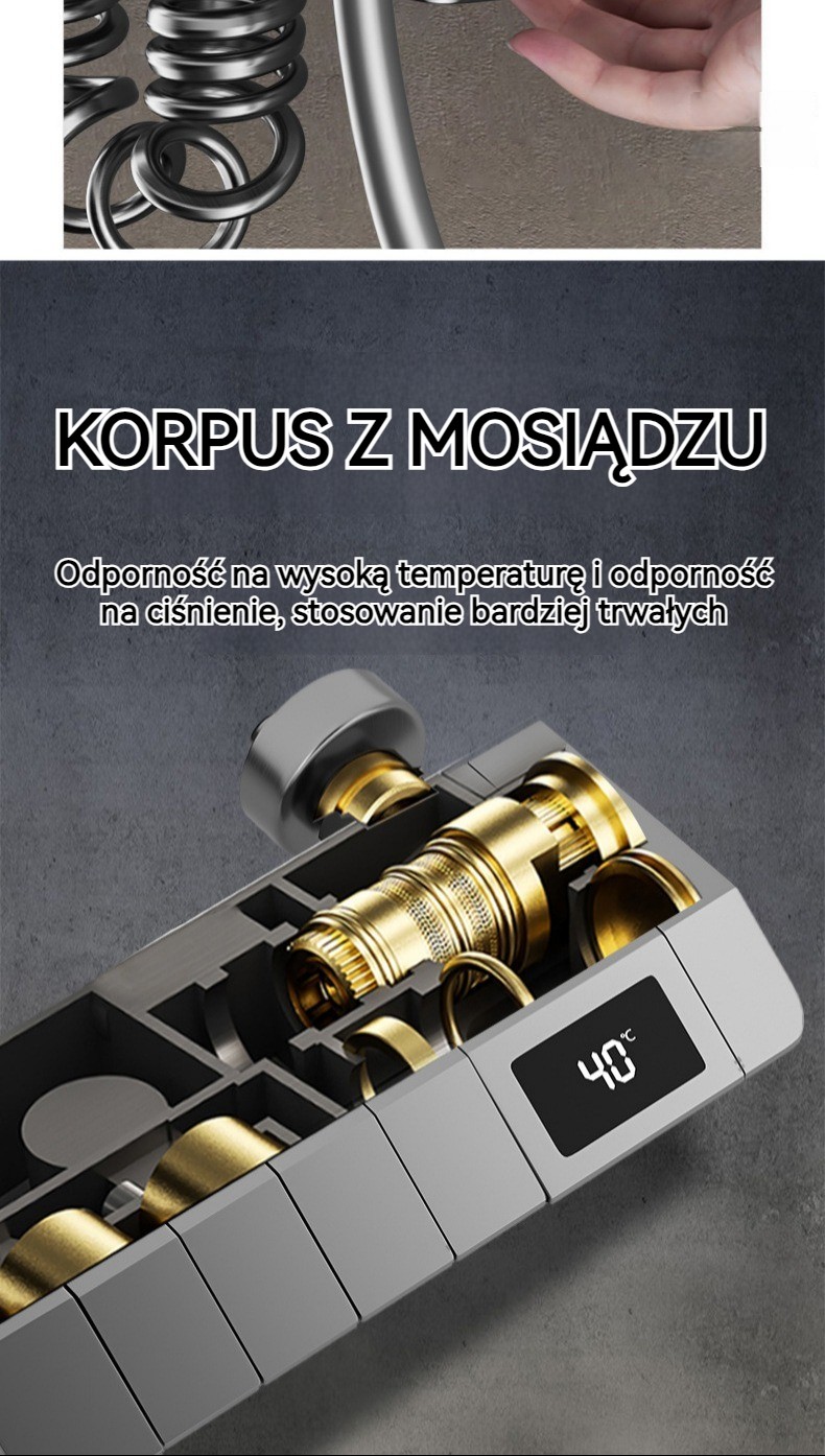 Zestaw prysznicowy, konstrukcja przycisku fortepianowego, ciesz się prysznicem spa, piękny i praktyczny, cyfrowy wyświetlacz temperatury hydroelektrycznej