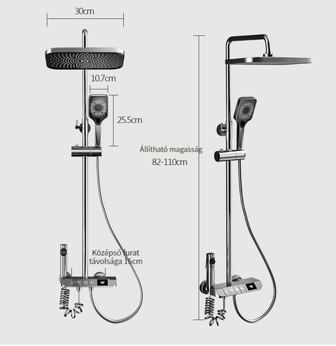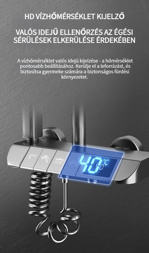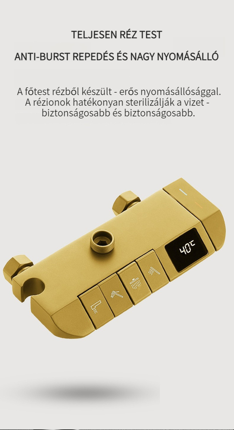 Teljes réz intelligens termosztatikus zuhanykészlet zongorabillentyűkkel, független kapcsolóval és HD digitális kijelzővel