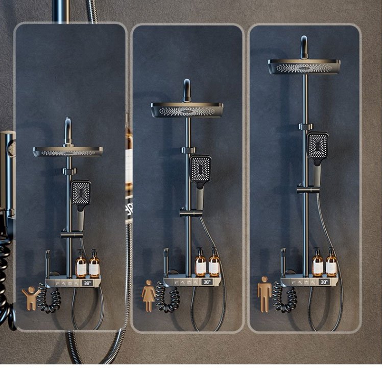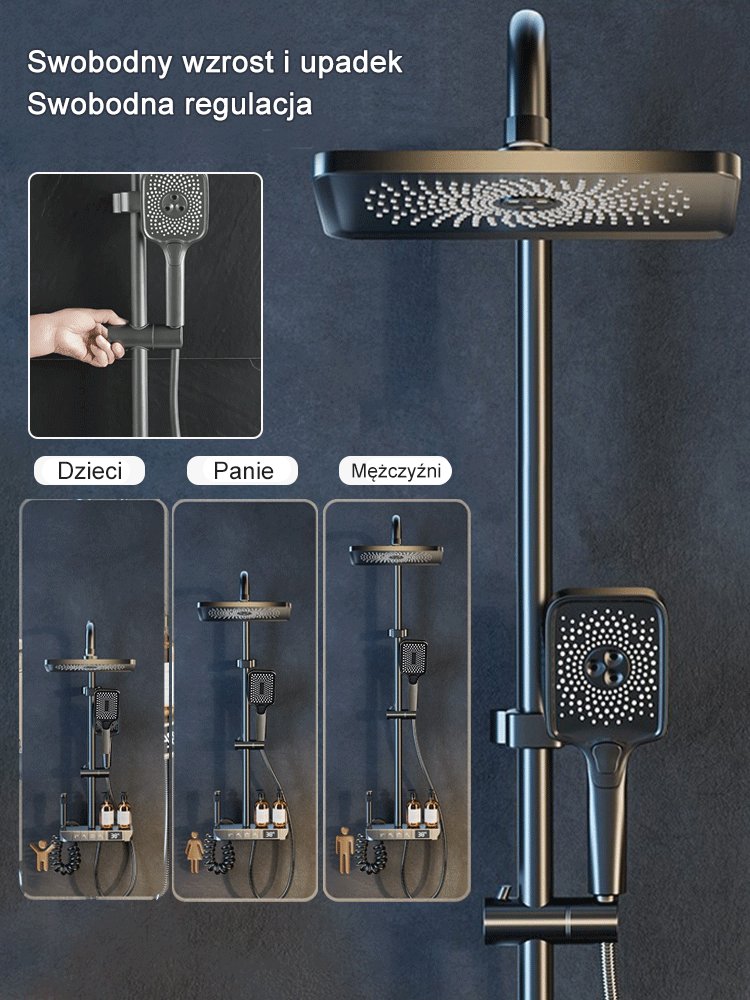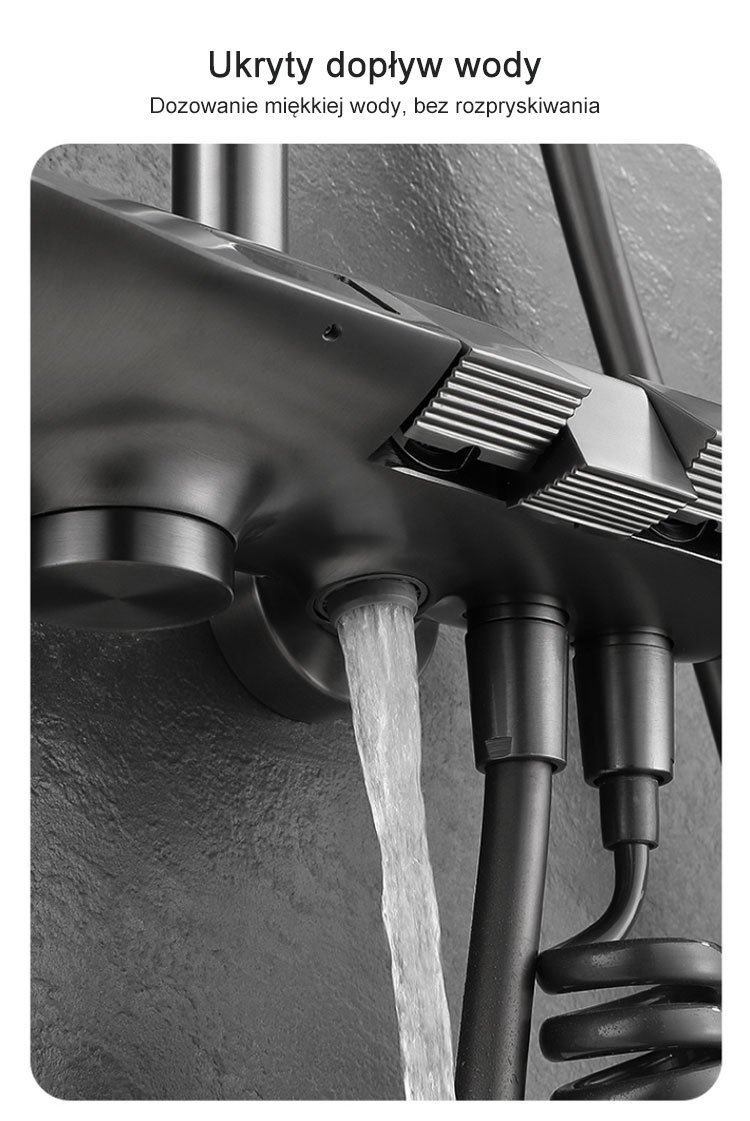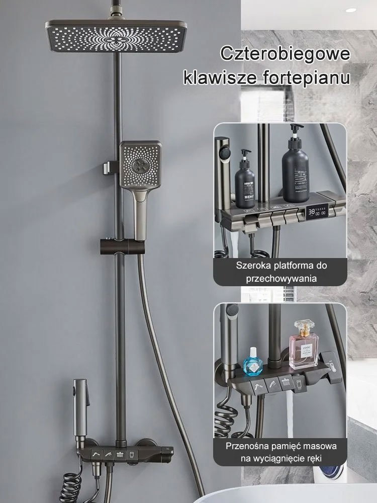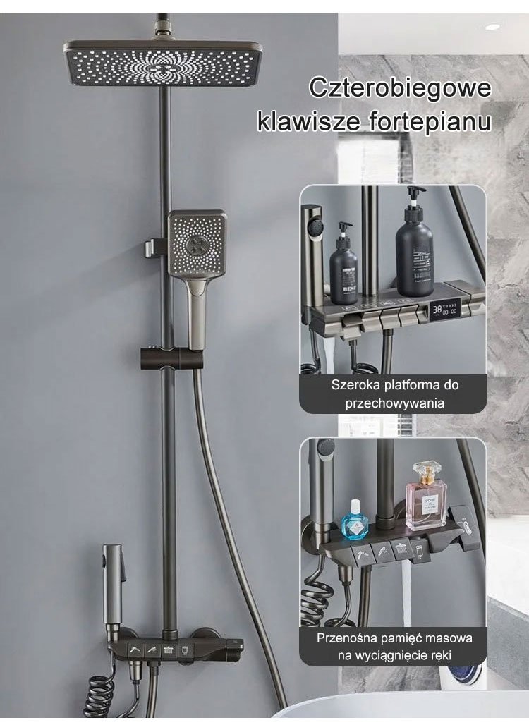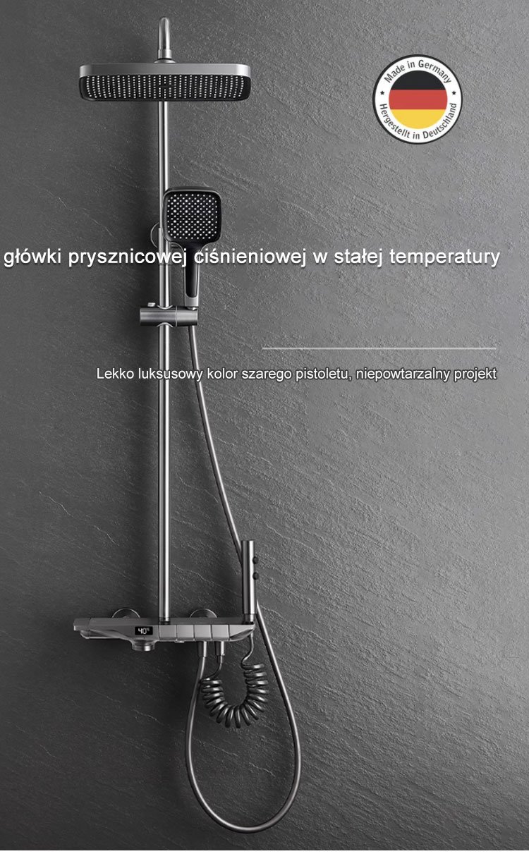 Zestaw prysznicowy, konstrukcja przycisku fortepianowego, ciesz się prysznicem spa, piękny i praktyczny, cyfrowy wyświetlacz temperatury hydroelektrycznej