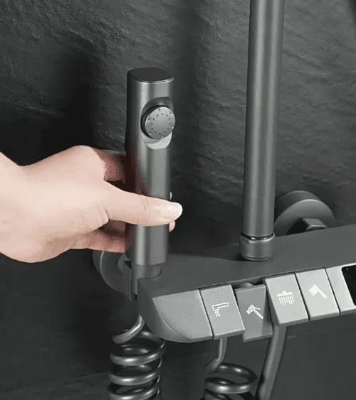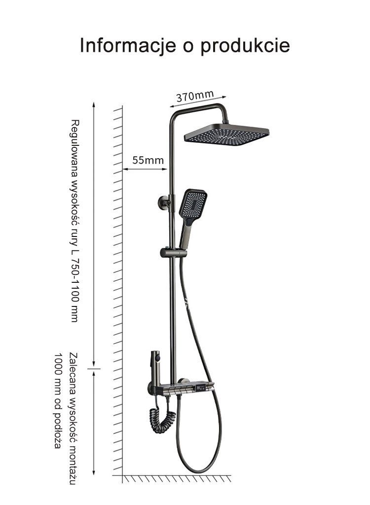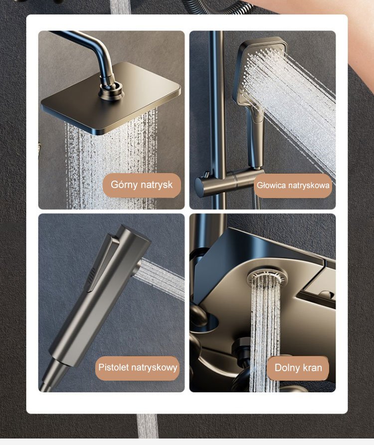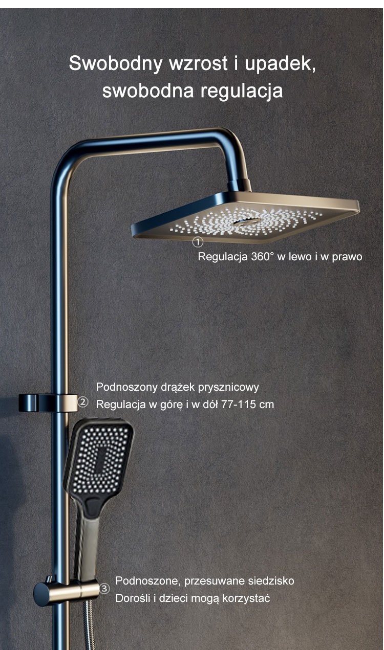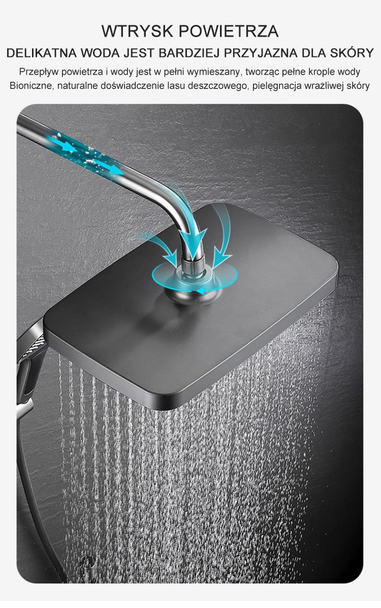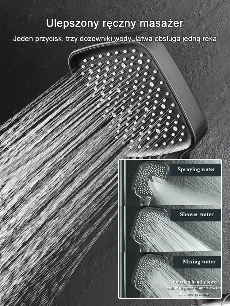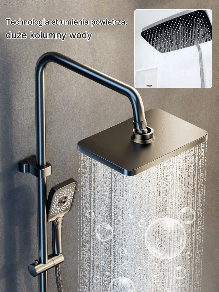 Zestaw prysznicowy, konstrukcja przycisku fortepianowego, ciesz się prysznicem spa, piękny i praktyczny, cyfrowy wyświetlacz temperatury hydroelektrycznej